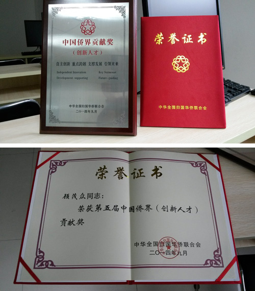 热烈祝贺上海底特董事长顾茂众先生荣获第五届中国侨界(创新人才)贡献奖